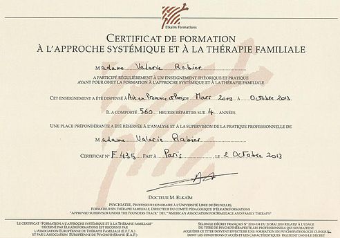 - Formation, certifiée par l’association Européenne de Thérapie Familiale.